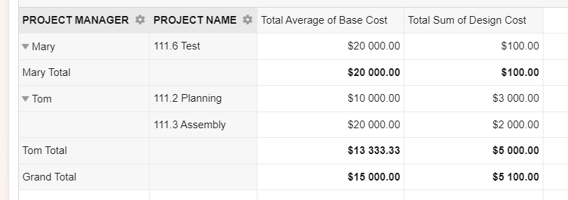 which works at the project level because it averages out. However, Tom's Total should be $30,000 instead of another average $13,333.
